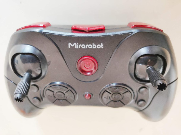 市面很多小型的无人机其所搭配的手柄也很小,然而觅睿恪这款手柄大小适中,握着很有手感。多个功能个按键也看的出设计者的良苦用心,左边舵杆为上下升降,右边为方向,下面左右两个圆形的按键分别是微调按钮。上端两个按钮左边是3/6轴切换,右边按钮是一键翻滚和一键翻正。也就是说当用户飞行时不小心炸机了,而且是桨叶朝下的情况,用户可直接通过遥控机轻松解决。