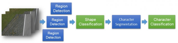 字符的二进制掩码被传递到字符识别阶段。最初我们打算使用Tesseract OCR算法,但是我们发现这个算法对图像的质量太过敏感,对单一字符的精确度非常低。因此最终,我们训练了一个传统的神经网络来处理这一步。