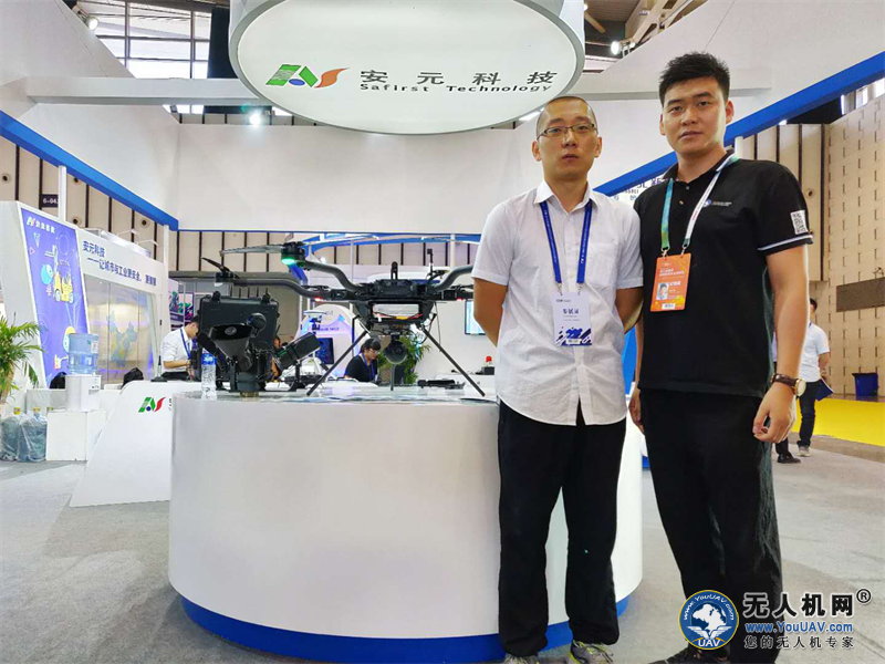 安元公司是依托南京工业大学的产学研一体化的高新技术企业和软件企业,是由深圳创投集团、南京高科集团等大型知名创投机构参与投资的科技企业。安元科技安翼系列无人机是安元自主设计、研发的公共安全、智慧农业等领域专用的工业级无人机产品,拥有多项专利,产品由无人机主机(机身、动力系统等)、任务载荷(光电吊舱、高清图传、无线传感器、高空照明、通信中继、抛投装置等)、飞控系统、地面控制站等。此次公司携一款便携可折叠多挂载无人机亮相展会,可实现夜间高强度照明、全向喊话以及航拍摄影等功能。