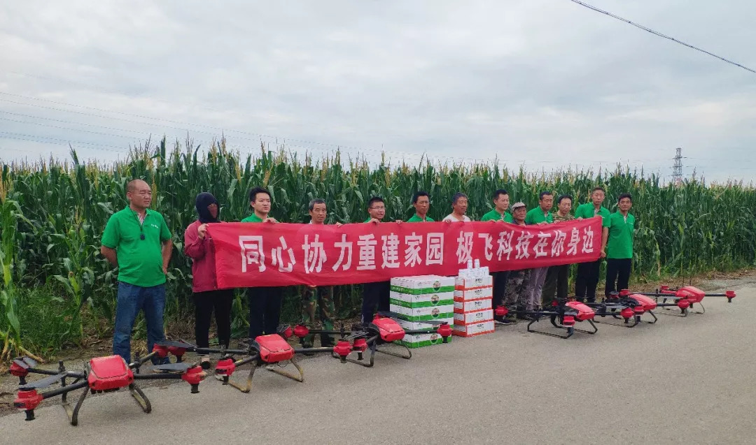 灾情发生后,极飞科技在第一时间组织飞防队进入寿光,联合山东恩宝生物科技有限公司(以下简称恩宝生物公司),为受灾农作物免费进行化肥喷洒,帮助寿光人民恢复生产生活。