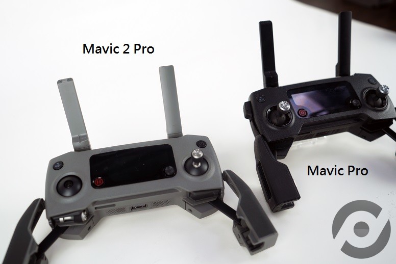 比对 Mavic Pro 与 Mavic 2 Pro 两款遥控器,两者颜色均跟随机身, Mavic Pro 遥控器颜色较深,而 Mavic 2 Pro 则较浅。另 Mavic 2 Pro 沿用 Mavic Air 的遥控器设计,摇杆可拆卸并收纳于遥控器内。遥控器右侧除了可调成 Mavic Pro 固有的 P ( GPS 模式)及 S (运动模式)模式外,新加入了 T 「三脚架模式」,让无人机飞行在天时拍摄的视频更添稳定性。