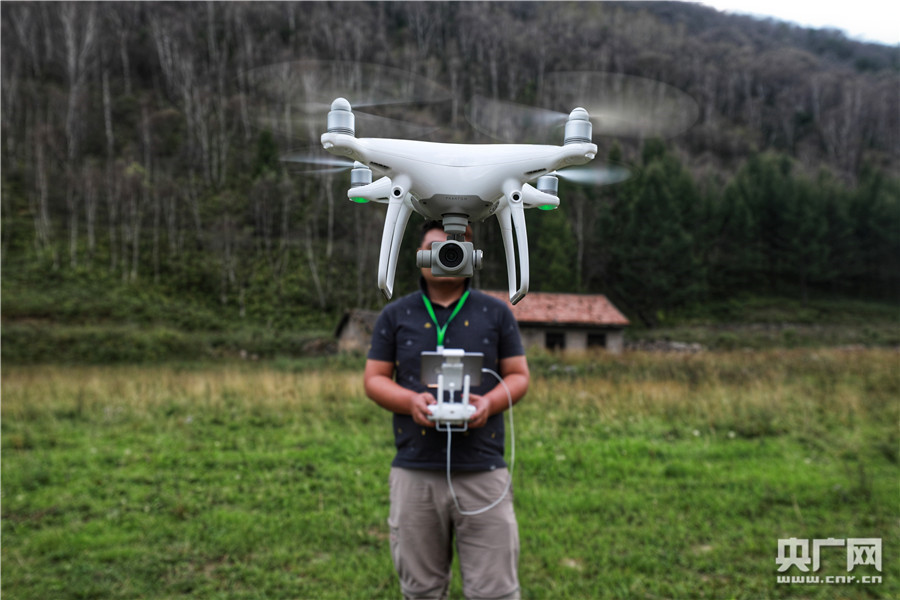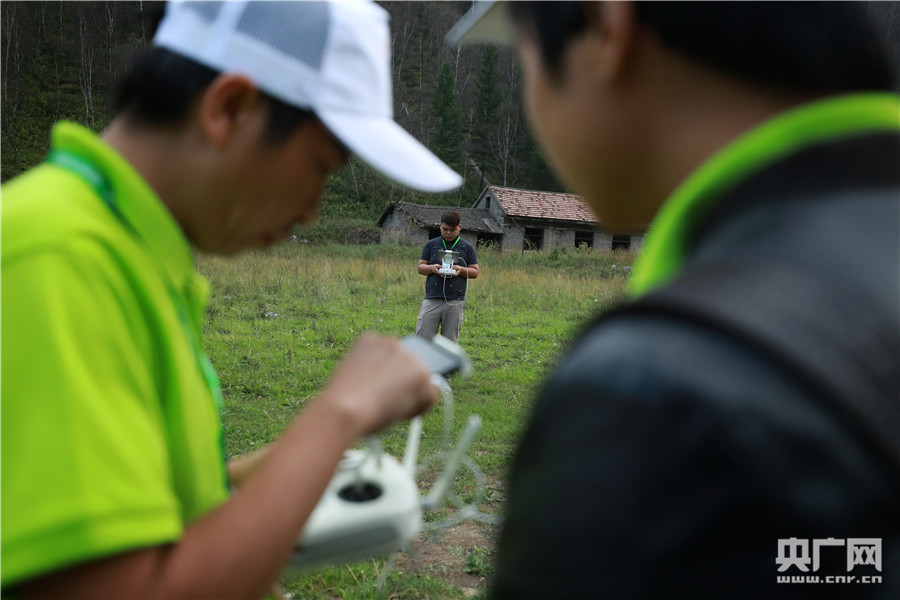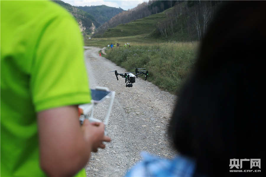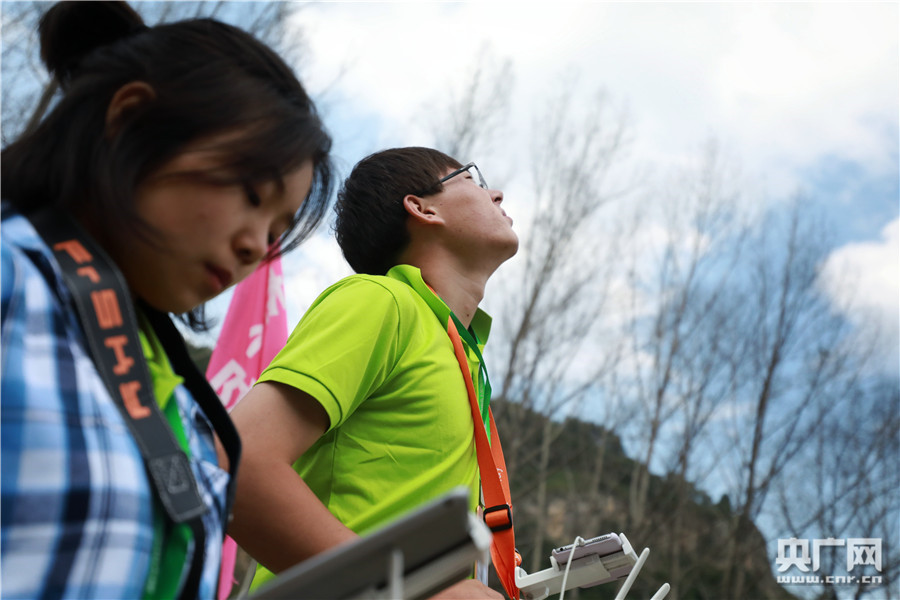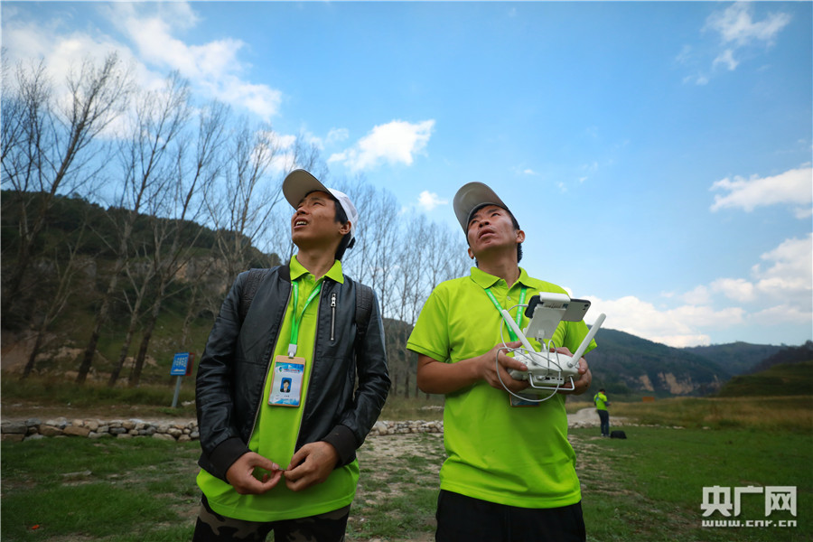 选手操控无人机拍摄沁河源头风景。央广网记者 郑重 摄
