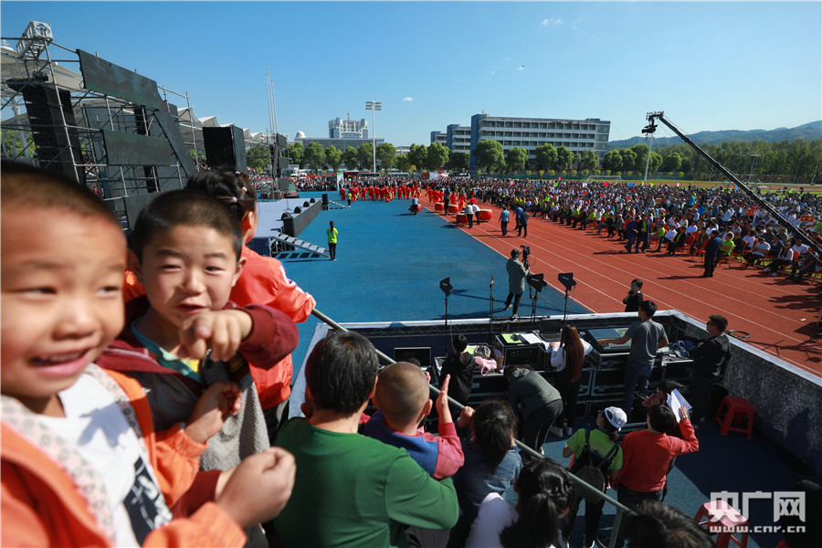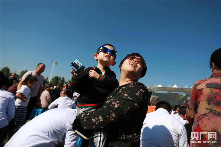 开幕式上,观看无人机表演的观众。央广网记者 郑重 摄