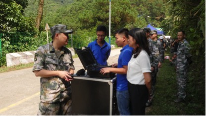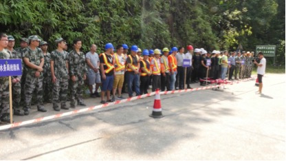 9月14日上午9点30,在肇庆市鼎湖区凤凰镇村庄山道上,一场以遭受台风暴雨山体滑坡为险情的抢险救援演练有条不絮的开展,由鼎湖区水务局、住建局、城管执法、交通局、凤凰镇政府联合科比特航空组成抢险队正在现场进行"紧急救援抢险",副区长马健娇、区委常委、人武部政委吴焯坚参加演习,各单位负责人亲自带队演练台风暴雨山体滑坡及树木被吹断影响交通要道的处理方案。