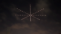 72架无人机轻启,炫丽彩灯,一呼一吸,徐徐升空,层层叠列,6×12矩阵映耀夜空,开启华丽的序幕。