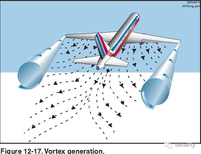 翼尖涡流拖带在翼尖之后,形成强大的涡流