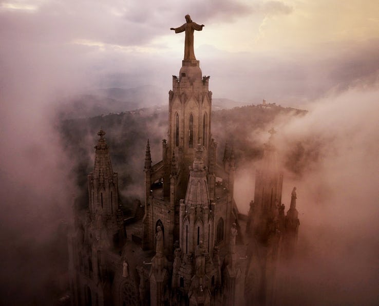 两臂张开的巨型耶稣像在世界上约有10座,巴西里约热内卢的耶稣山最为有名。巴塞罗那的最高教堂,圣心教堂,也有一座。那里位于Tibidabo山顶,是一个极好的观景点。从那里可遥望地中海、俯瞰整个巴塞罗那,和有奥运会场馆的蒙椎克山Montjuic遥相向往。