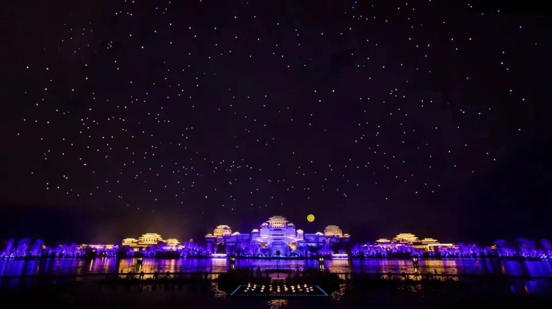采用国际领先舞台技术,由3000平米亚洲巨型全息水幕,高巨零度无人机编队团队用近百架新型无人机阵列“星空”,3维高科技全变频喷泉矩阵和灯光、水舞等技术设备组成,伴着兴汉胜境汉文化博览园作为舞台背景,形成了一个美轮美奂的虚幻与实景完美结合的效果,书写汉中这片土地上的故事,为您展现出一部汉文化的动人传奇画卷。