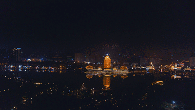 无人机光影璀璨与蜿蜒的赣江、壮观的“一江两岸”夜景交相辉映,让英雄城南昌沉浸在红色情怀之中,向祖国六十九华诞献礼!