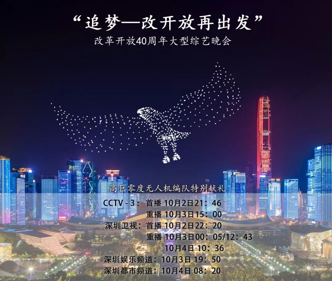 800架无人机闪耀鹏城!为庆祝改革开放40周年,深圳市委市政府主办的大型综艺晚会“追梦——改革开放再出发”今晚将在CCTV-3、深圳卫视的等频道播出。错过了现场的朋友,可以在大屏幕感受表演的激情活力,再次捕捉那只网红“大鹏”!