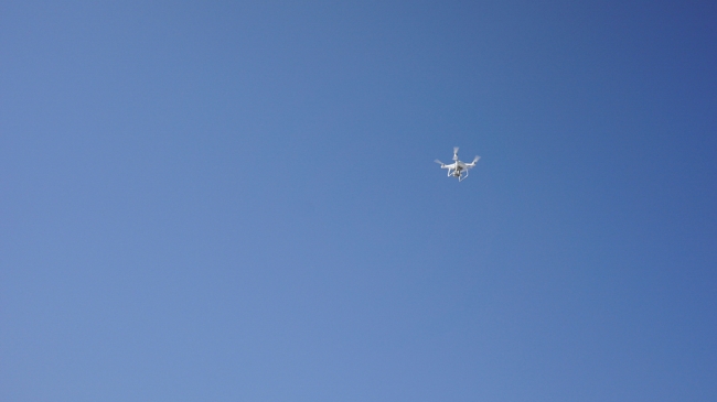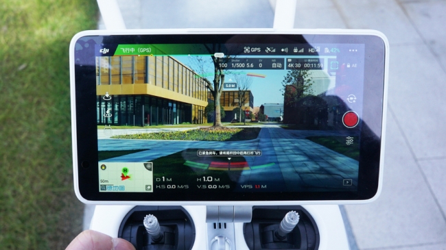 第一次试飞的下午阳光不错,可以看到精灵4pro+这块一体式的屏幕在强阳光的照射下显示效果还是很好的。