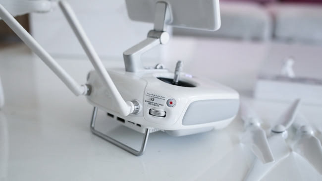 Phantom 4 Pro的遥控器设计也是干净简洁,外壳为白色,摇杆基座为黑色,支架和摇杆都是金属材质,Phantom 4 Pro+版本配置的这块一体化的5.5英寸屏幕显示效果也很好,主要是亮度可达1000cd/m2,在阳光照射下显示效果还是很清晰的,不过在实测中发现,如果是非常强的阳光直射,屏幕最大亮度还是偏暗,需要用手遮挡一下,可以考虑装个遮光罩。