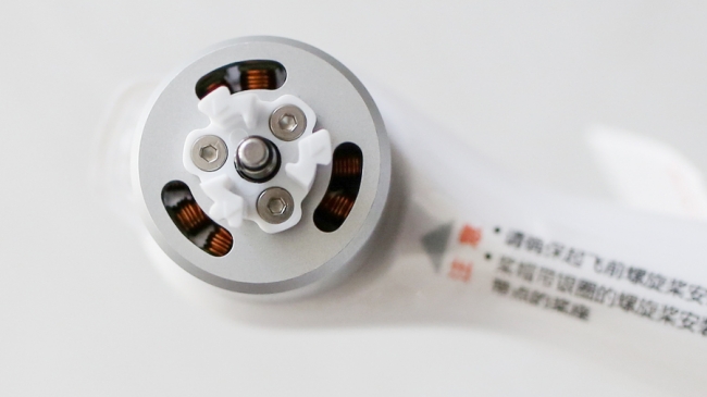 精灵4 Pro的电机也有细节上的优化,快装桨由原先的三片弹簧片改为单个的中央螺旋弹簧,这样相当于“防呆设计”安装上会更方便,装好后一般也不会出现螺旋桨在飞行过程中松动掉落的情况。