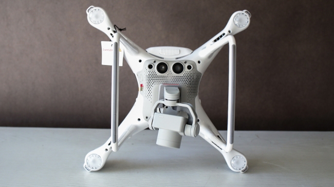 机身底部的水平高度声纳探测探头和视觉探测探头,周围则是密密麻麻的电池散热孔。