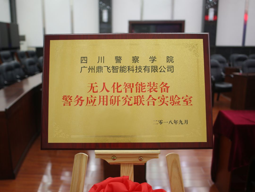 2018年9月28日下午,“无人化智能装备警务应用研究联合实验室”揭牌仪式在四川警察学院隆重举行。四川省公安厅党委委员、四川警察学院党委书记张光华出席仪式并和广州鼎飞智能科技有限公司总经理共同为实验室揭牌。