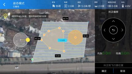6)航线平移:航线平移可微调航线的偏移距离,也可对地块进行参照点一键纠偏。(地块上的参照点可在地块测绘时设置)