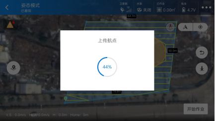 4、点击【确定】按钮,等待上传航点,航点上传完成后进入自驾模式,执行航线规划作业。