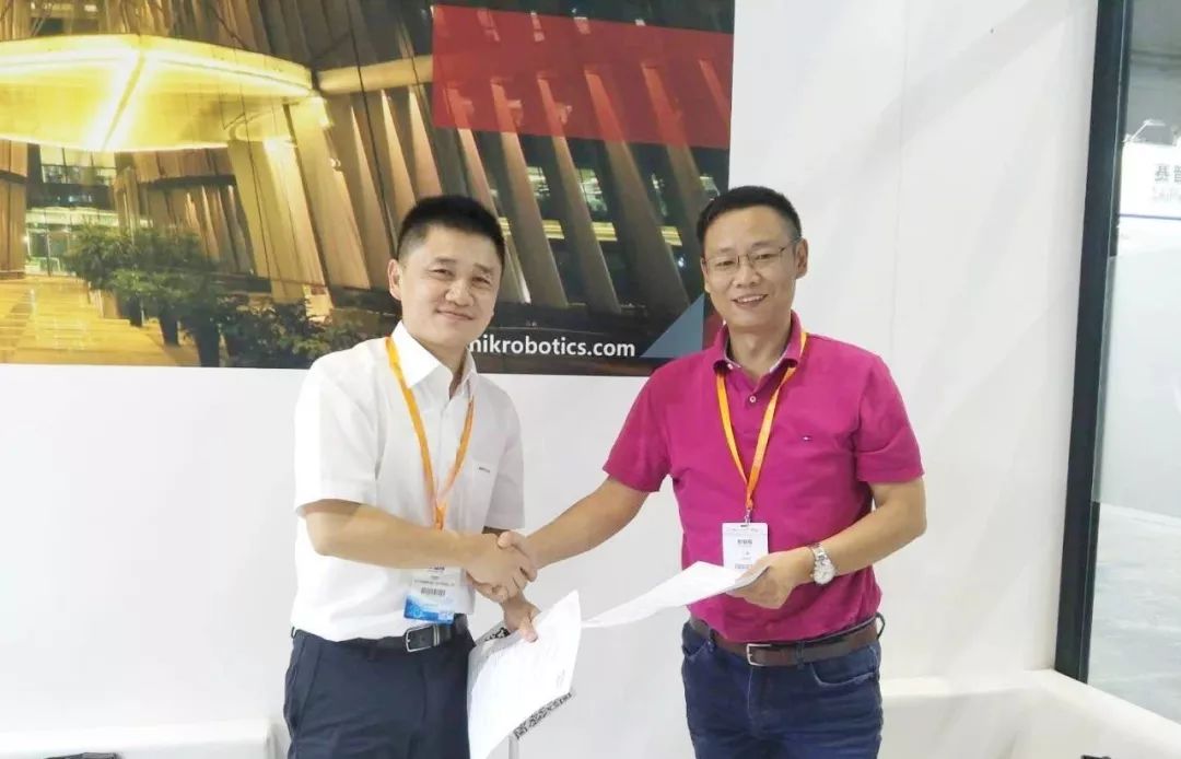 海康威视高级副总裁、海康机器人总裁贾永华和大族激光副总裁、大族视觉总裁王瑾代表双方公司签署战略合作协议。