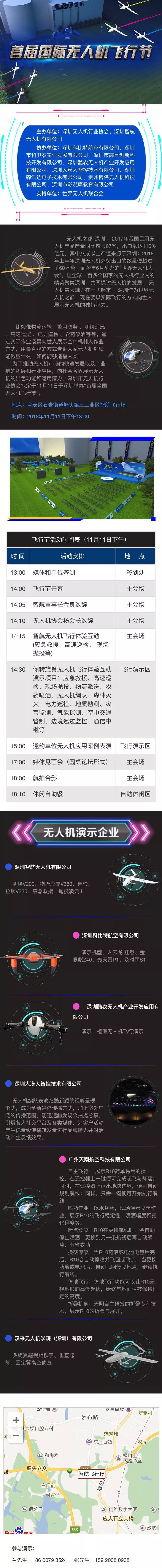 首届国际无人机飞行节于11月11日在深圳举办,智航无人机作为首届国际无人机飞行节的发起单位和承办单位具体负责此次国际飞行节活动,不仅仅展示号称航空工业明珠的倾转旋翼垂直起降无人机的飞行性能和强大的作业能力,更肩负展示整个无人机应用产业链的重担,携手各大优秀无人机厂家前来进行实际作业展示。