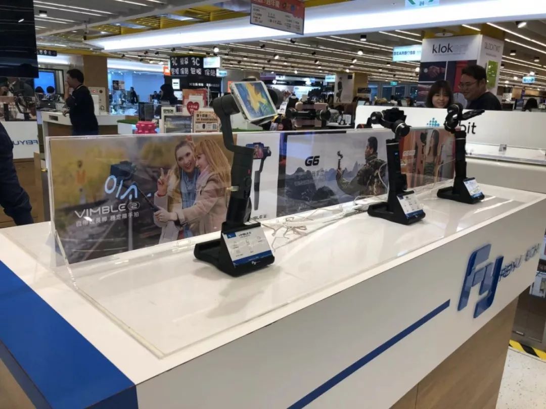 飞宇稳定器是最早进入台湾摄影器材市场的大陆稳定器品牌。经过几年发展,飞宇稳定器在台湾各个通路运转良好,并连续创下销售佳绩,各大商场内飞宇科技的店铺也在陆续开张。