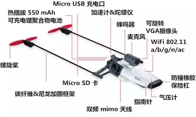 别看它小,它可是自带了摄像头、指南针、麦克风和 Wifi 等各种组件。
