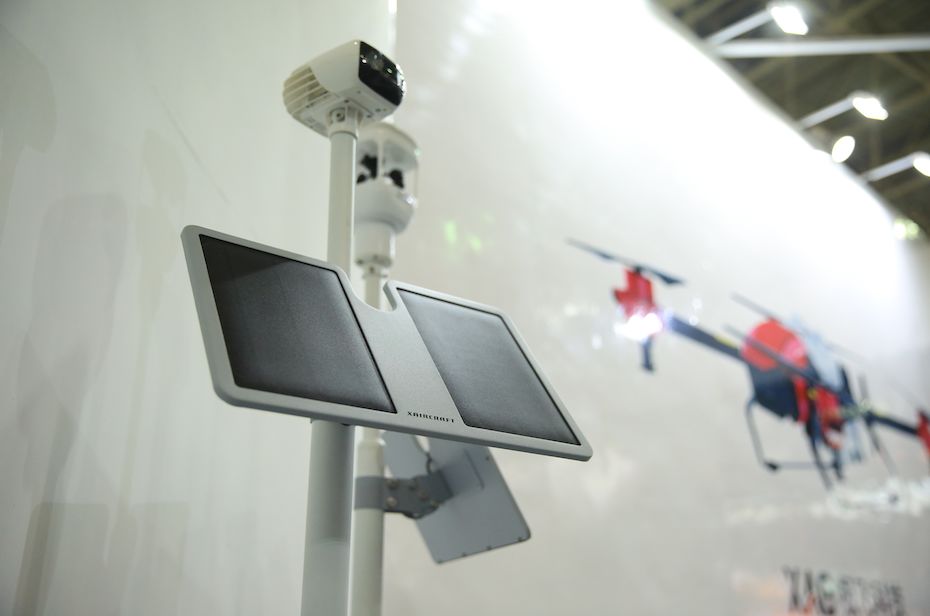 极飞展出的 FM1、FM2 智能农田监测站采用太阳能供电,精准 GPS 定位。