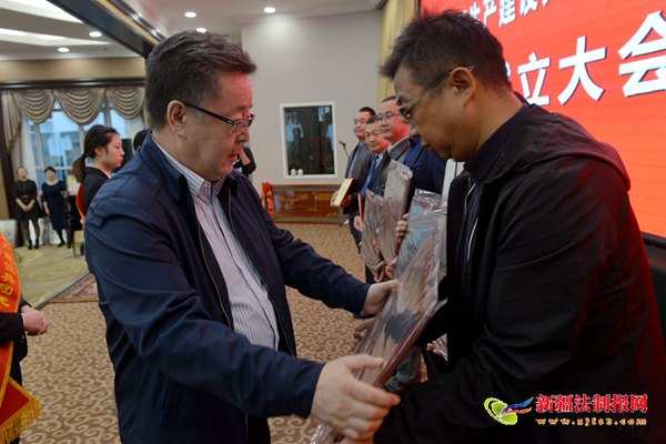兵团民政局领导给名誉会长、常务副会长单位、监事长、常务理事单位、理事单位授牌。