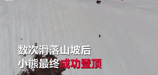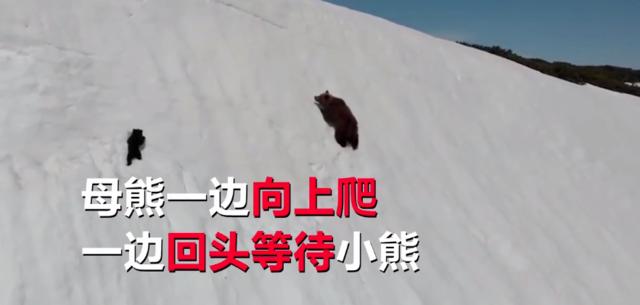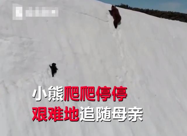 小熊跟妈攀爬雪山,多次滑落终不放弃,专家却称:无人机“作祟”