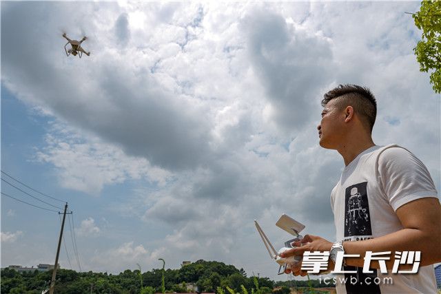长沙无人机飞手正利用无人机进行环境监测工作。 均为长沙晚报记者 陈飞 摄