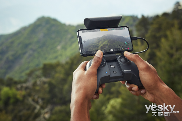 采用折叠设计的还有PARROT ANAFI操控器--Parrot Skycontroller 3遥控器,它同样具备小巧便携的特点。如果说PARROT ANAFI的机身重量仅有一副羽毛球一般,那么386g的遥控器也丝毫不会增加手部负重。