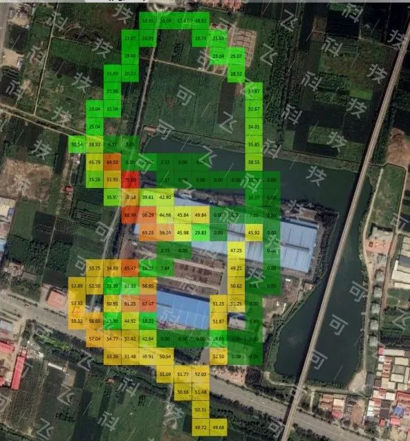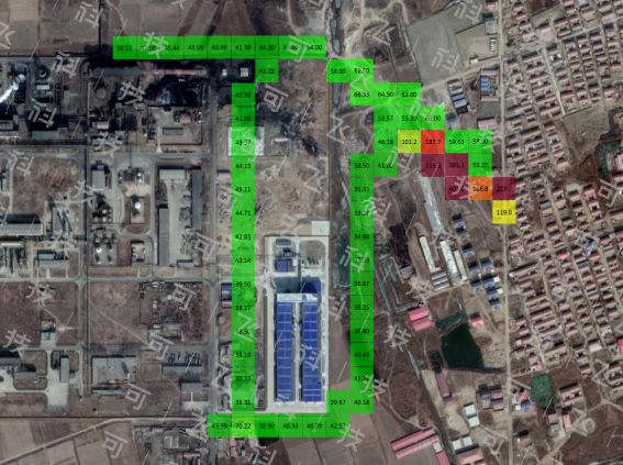 通过实地检测发现,该钢管厂的两类烟囱排放的气体成分和浓度不同,东北处主要以SO2为主,西南烟囱主要以NO2为主,在工厂区域气体污染明显高于周边区域。利用无人机近距离对烟囱排放进行检测和拍摄,对于偷排监测有极高的隐蔽性和及时性。