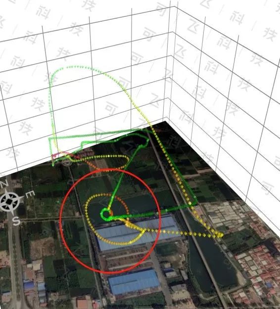 10月10日,在对沧州市某钢管厂检测期间,汽车和手持设备均无法抵达厂区附近,而采用无人机搭载移动气体检测设备轻松地完成了对该工厂全方位的气体污染物检测。首先利用无人机在约50米高空绕烟囱盘旋飞行,根据实时显示的污染物数据可判断烟囱排放气体的主要成分,然后提升飞行高度至120米以烟囱为圆心飞行,最后沿污染区域上风口和下风口分别飞行,以确认排出的烟气对周边环境的影响。在污染物检测的同时拍摄可见光视频,既可以高空查看厂区周边的环境,也可以留下影像资料。