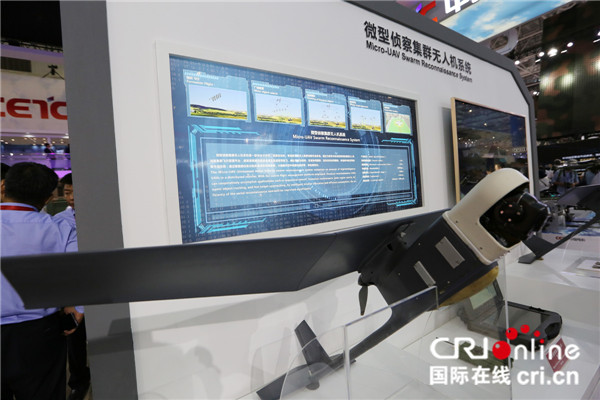 针对信号干扰等防范打击,中国电科展示的微型侦察集群无人机系统,通过给无人机加载基建通信数据链路等手段,可同时支持20架无人机集群编队飞行,抗干扰和执行任务能力更强。中国电科信息科学研究院工程师杨祖强说,“所有的规划都是在机上完成的,不需要地面实时控制,不管是地面节点,还是空中节点断掉都不影响整个任务的执行,这就给侦察任务提供了更可靠的保证。我们未来也在考虑如果GPS被干扰,只要其中一架有定位,通过区间位置关系的相互推算,也可以保证其它飞机的能够知道自己的位置,保证任务的完成。”