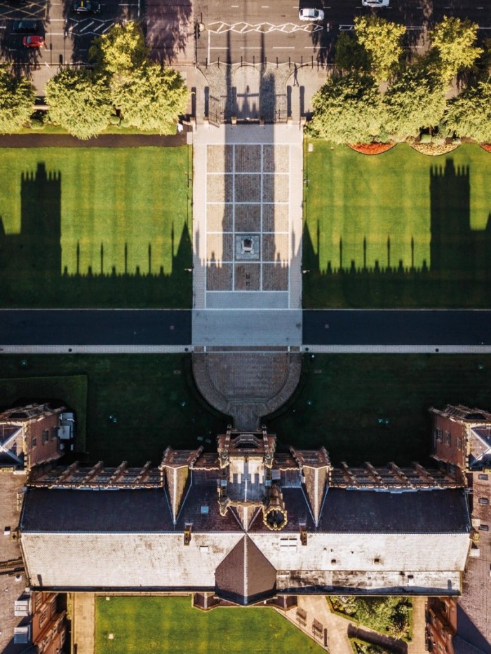 无人机航拍 –Queen's University, Belfast, Northern Ireland. "The Queen's sundial"