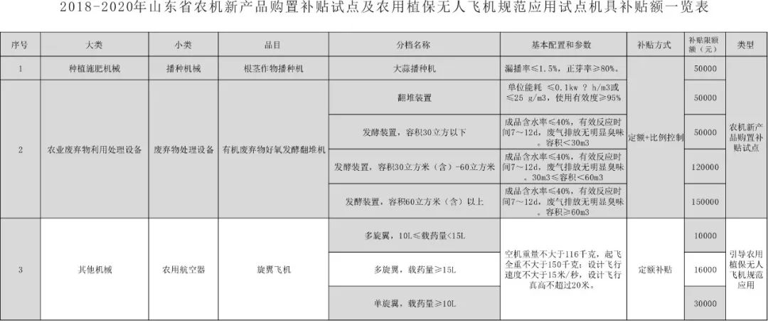 (一)当年购买的符合补贴条件的农机新产品和植保无人机,均可办理补贴申请手续。对于符合补贴条件的大蒜种植机械、有机废弃物好氧发酵翻堆机,实行敞开补贴。每个农业生产经营组织购置植保无人机年度补贴数量,由各市根据需求和资金使用情况进行控制。