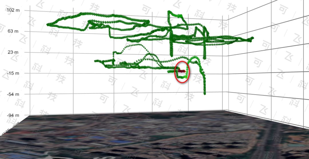 灵嗅”绘制出的工业区VOCs 3D点云浓度图,红色标记处为浓度异常区域