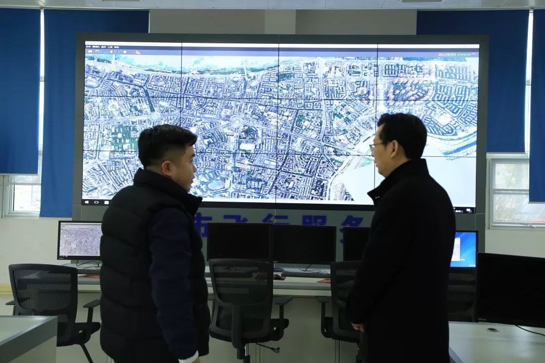 董事长王湲向尤荣福书记演示数字三维模型功能