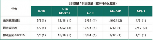表2展示了同样的近距空中支援场景对不同类型飞机的数量要求,不难发现,无人机较长的留空时间优势, 可以有效减少后方机场待命轮换机组的数量,而在执行任务本身,无人机跟有人机相比并无区别。但值得注意的是,无人机的长航时特性必须要有相应的高可靠性系统设计作为支持, 否则长航时就成了一纸空谈。