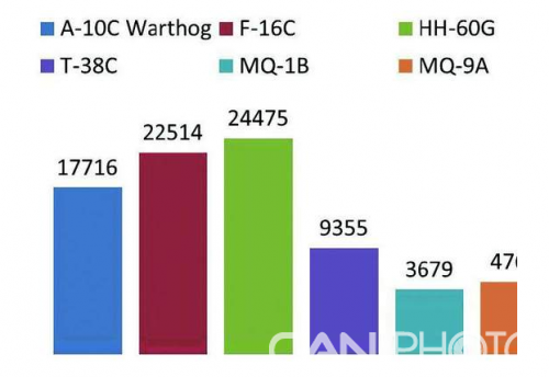 更好的经济性。根据DARPA的统计数据,美军作战飞机投下的武器有80%用于近距空中支援作战,在如此漫长而又零散的作战周期中,使用昂贵的轻型战斗机执行近距空中支援作战,对作战人员,特别是飞行员造成了沉重的负担,经济上也是一笔巨大的消耗,而任何一架战斗机的损失造成的政治影响更是无法估量的。因此,美军大量启用了无人平台执行近距空中支援作战任务,包括MQ-1B、MQ-9A在内的察打一体无人机提供了有人作战平台无法提供的高性价比。柱状图展示了不同作战平台的单位作战小时成本,可以看到,即使是号称廉价高效的A-10攻击机,其作战成本也数倍于无人机。