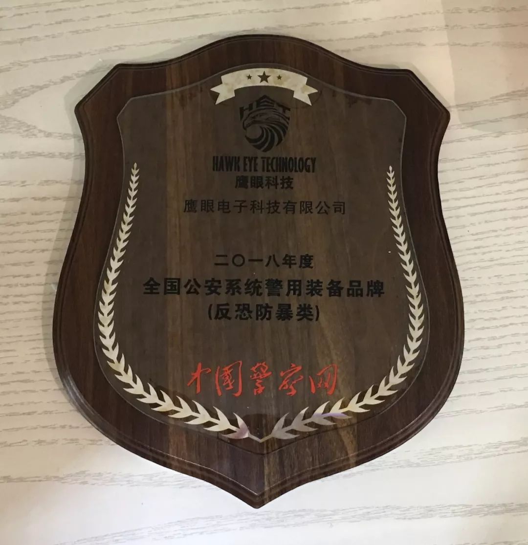 在2018年12月26日举办的2018(第七届)全国公安民警最关注的警用装备品牌颁奖仪式暨全国警用装备品牌发展研讨会上,“鹰眼”被评为2018(第七届)全国公安民警最关注的警用装备品牌。