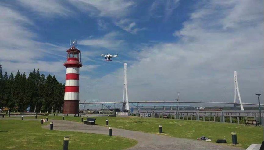 2018年7月,汇星海盖亚油电混合动力无人机在南京三桥鱼嘴河道进行巡检作业,大大提高了巡检效率。