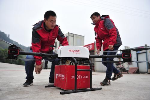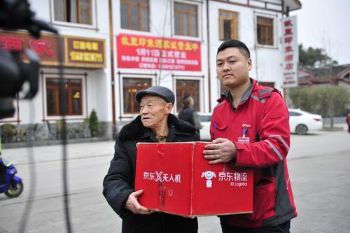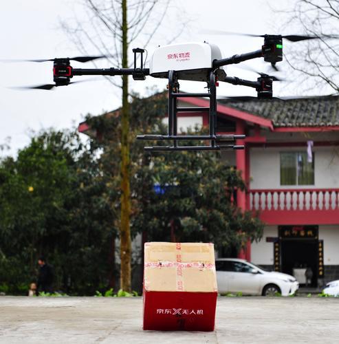 京东在广安市启动西南地区无人机常态化配送 无人机送“年货”包裹
