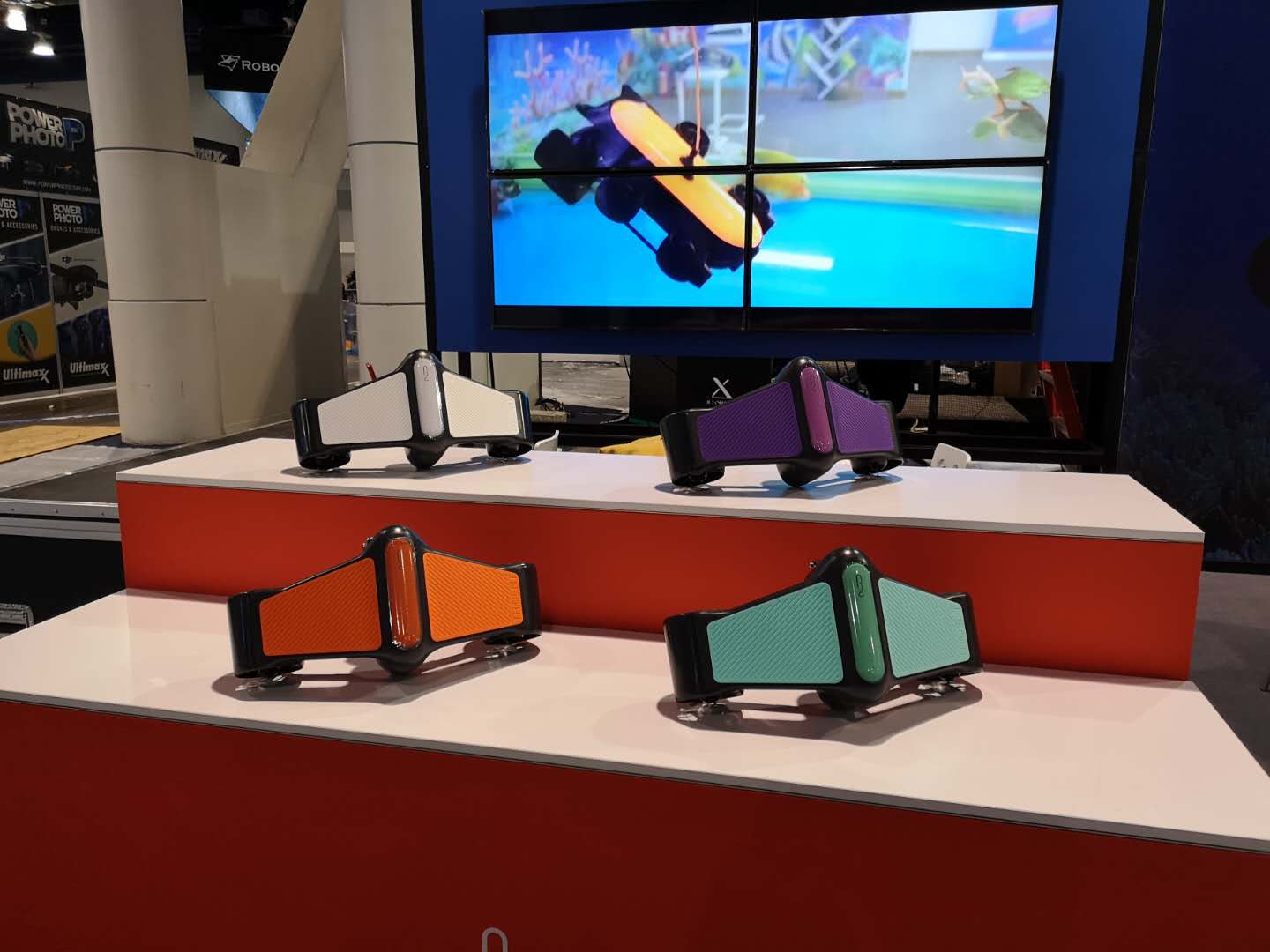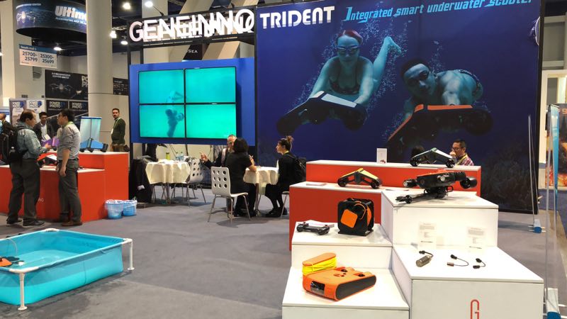 据了解,今年已经是吉影科技参加的第二个年头了,时隔一年,吉影科技在产品上的研发也是加大了马力。此次更是带来了旗下所有水下无人机产品,分别为泰坦、波塞冬I、泰鼎。三款水下无人机都具备着不错的性能,都能够让您在愉快的度假中增添一抹科技的乐趣。