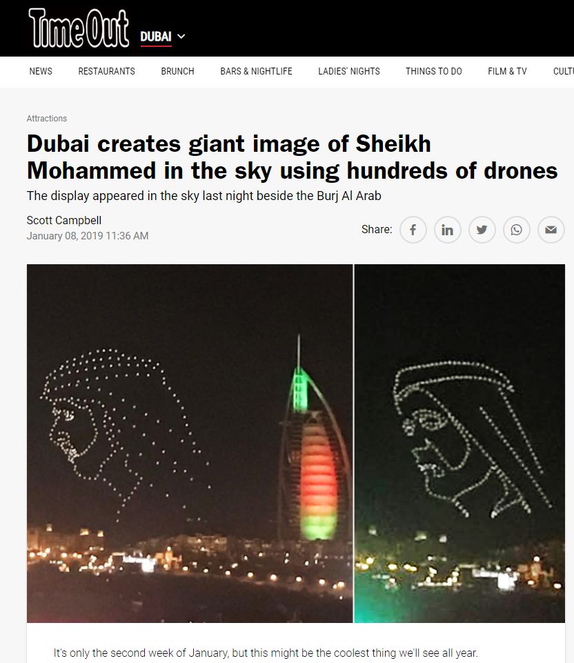 这也是迪拜地区首次规模最大的无人机编队表演