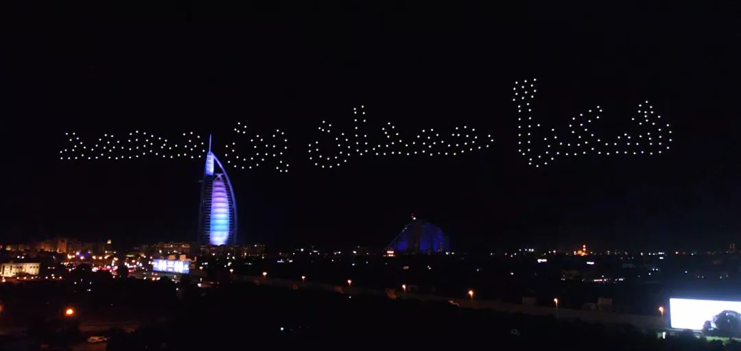 在迪拜活动中,我们无人机编队表演团队还受邀为Ajman政府进行过一场炫彩的无人机编队表演,并在当地电视台进行了直播。
