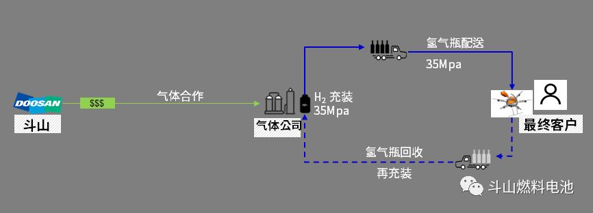 作为第一阶段的开发目标,斗山从18年开始与韩国,中国,美国的气体公司合作,一同构建35Mpa氢气充装设施及配送网络。