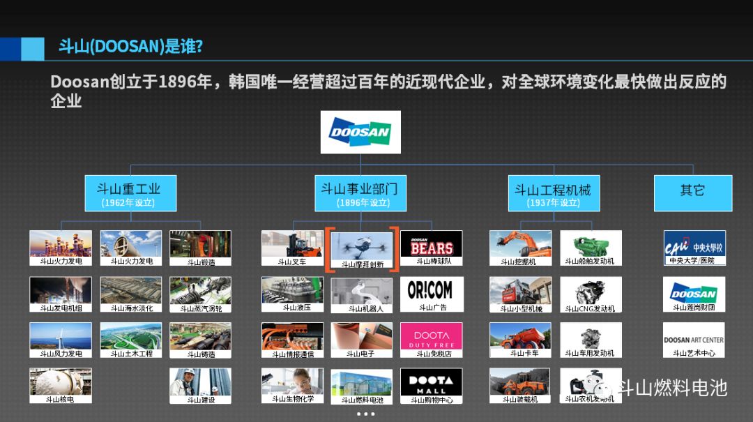 成立于2016年末的斗山摩拜创新(DoosanMobility Innovation简称DMI)作为韩国斗山集团(Doosan Group)下属全资子公司,致力于便携式氢气燃料电池系统及应用的开发。