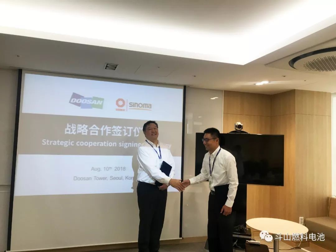 2018年8月斗山摩拜创新和中材科技在韩国斗山集团总部签署了加深合作的战略合作协议。双方同意在便携式燃料电池系统领域进行深入合作,建立相应工作机制,分工协作,整合项目所需各种资源,共同推进便携式燃料电池开发业务顺利开展。