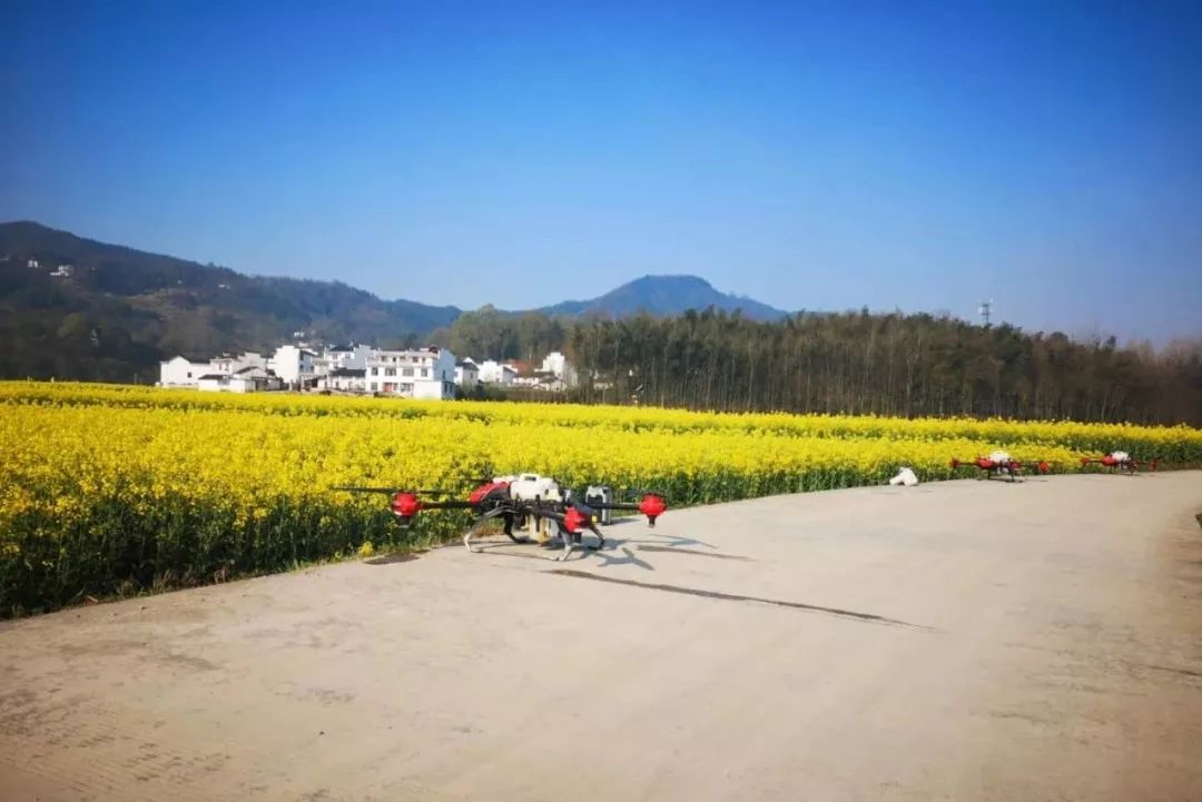 为了大力发展“油菜花+旅游产业”模式,进一步提高我国油菜植保抗灾减灾技术水平,推动各种新技术、新方法、新装备的快速应用,实现油菜生产和旅游产业协调发展。3月23日-26日,国家油菜产业技术体系和中国作物学会油料作物专业委员会,在安徽黄山市召开了“2019 年全国油菜植保技术培训班暨油菜病虫害综合防控现场观摩会”,全国各地 200 多位植保体系专家、研究机构人员参与了会议,极飞科技及安徽合作伙伴也受邀出席,并在现场展示了 P 系列植保无人机在油菜花病虫害防控上的喷洒优势。