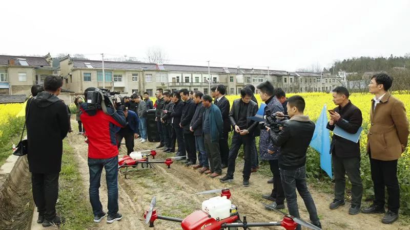 现场的 P30 喷洒飞行演示,引起了在场观摩的领导和嘉宾极大的兴趣,他们将飞防队员团团围住,纷纷询问这种新型农业设备的具体特点。